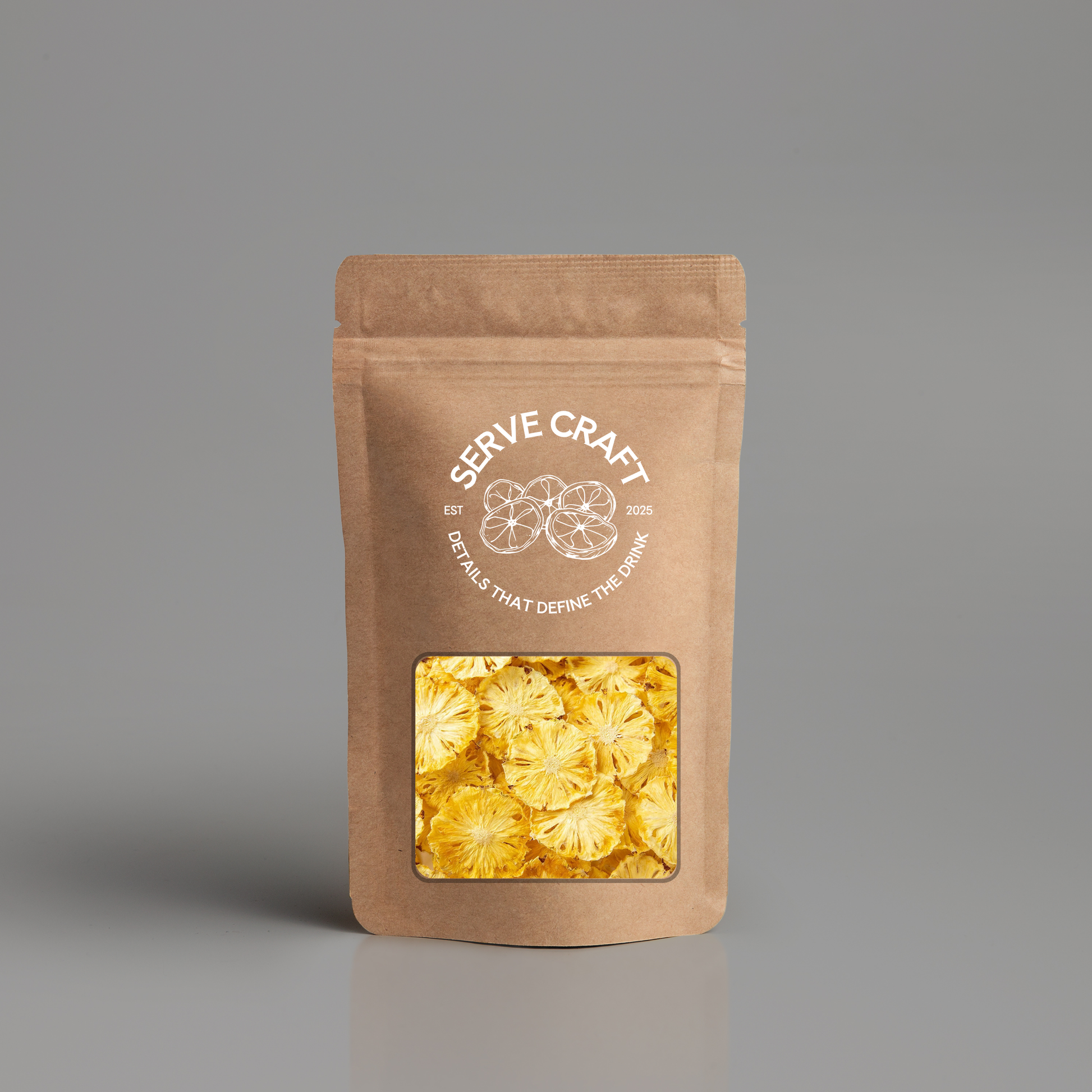 Premium dry pineapple slices crafted for cocktails. No sugar, no sulphur. Bright flavour, consistent cut, and shelf-stable garnish for bars.